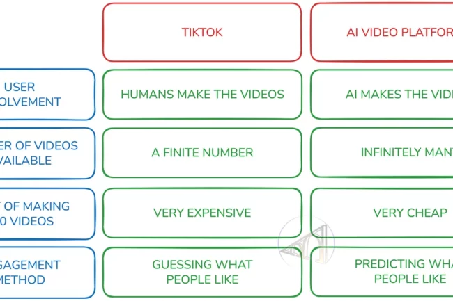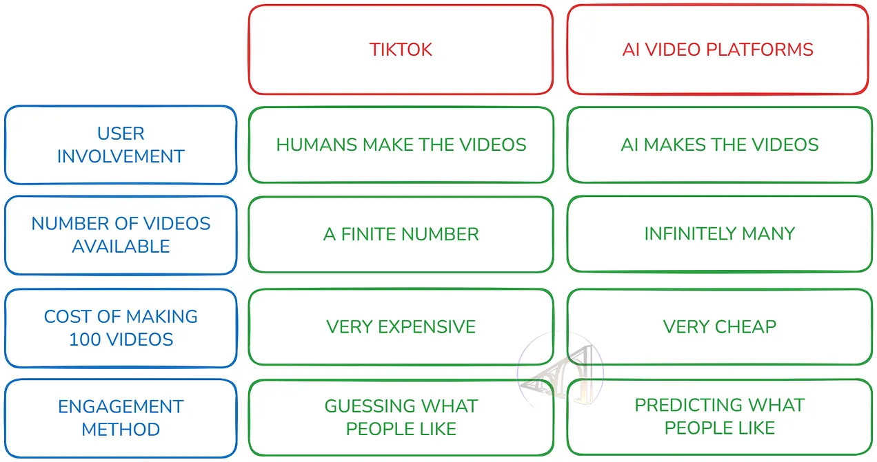 It lays out what is essentially the economics of synthetic attention in human vs AI video platforms*.* This frames really well what the shift taking place likely looks like. The scale, the targeting, the personalization. The inference all play out neatly.